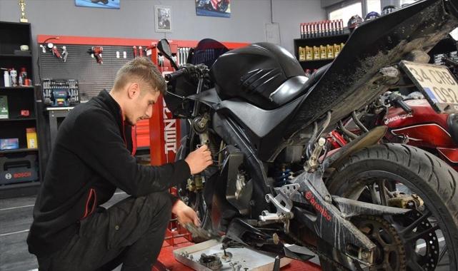 Bilecik'in Osmaneli ilçesinde yaşayan üniversite öğrencisi, Küçük ve Orta Ölçekli İşletmeleri Geliştirme ve Destekleme İdaresi Başkanlığınca (KOSGEB) verilen destekle bisiklet ve motosiklet tamiri yaptığı işini kurdu.