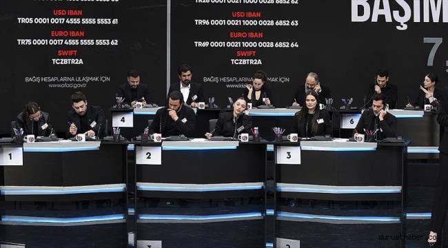 TRT1, ATV, FOX, Kanal D, Kanal 7, Show TV, Star TV ve TV8, Kahramanmaraş merkezli depremlerden etkilenen vatandaşlara bağış toplamak için yapılan ortak canlı yayına ünlü isimler katıldı.