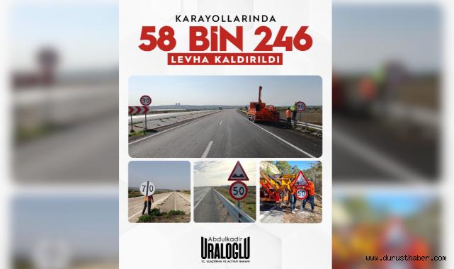 Bakan Uraloğlu, yapılan çalışmalar kapsamında toplam 58 bin 246 trafik levhasının kaldırıldığını belirterek, gereksiz ve mükerrer işaretlemelerin ortadan kaldırılmasıyla sürücülerin dikkatinin yola daha fazla odaklanmasının hedeflendiğini ifade etti.