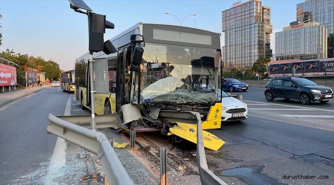 Otobüste bulunan 5 yolcu ve sürücü kazayı yara almadan atlatırken, aracın ön kısmında hasar meydana geldi.Kaza nedeniyle yan yolda trafik yoğunluğu oluştu.