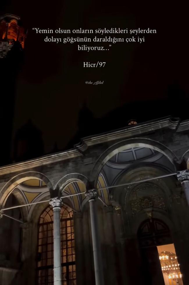 Yıldız, paylaşımında Hicr Suresi 97. ayete yer vererek, “Yemin olsun onların söyledikleri şeylerden dolayı göğsünün daraldığını çok iyi biliyoruz…” ifadelerini kullandı. Ayetli paylaşım, soruşturma süreci devam ederken sosyal medyada geniş yankı uyandırdı.
