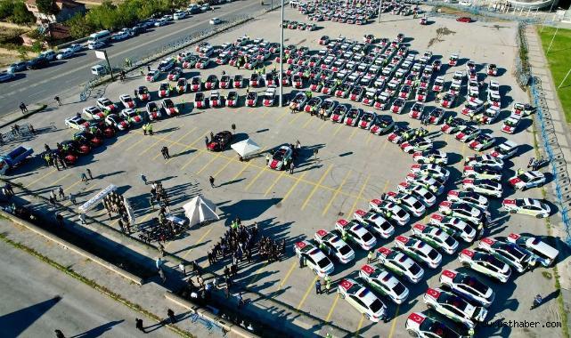 Kayseri emniyetine tahsis edilen 244 yeni aracın anahtar teslim töreni RHG Enertürk Enerji Stadı otoparkında gerçekleştirildi.