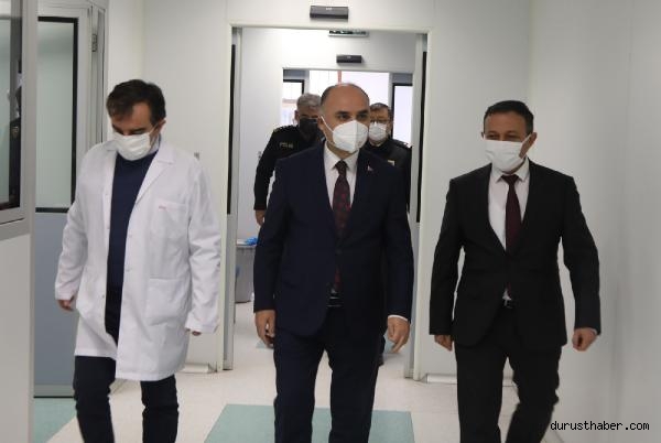 KAYSERİ Valisi Şehmus Günaydın, Erciyes Üniversitesi Aşı Araştırma ve Geliştirme Merkezini (ERAGEM) ziyaret etti. Turkovac aşısını geliştiren Prof.Dr Aykut Özdarendeli ve ekibini tebrik eden Vali Günaydın, çalışmaları yerinde inceledi.