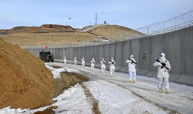 Komşu ülke ile olan 295 kilometrelik sınır hattının güvenliğinin sağlanması ve yasa dışı faaliyetlere kapatılması amacıyla yürütülen güvenlik duvarı ve gözetleme kulesi yapımı ile hendek kazma çalışmaları devam ediyor. Sınır boyunda özellikle düzensiz göçmenlerin İran üzerinden Türkiye'ye geçişlerinin önlenmesi amacıyla başlatılan çalışmalarda şu ana kadar 170 kilometrelik bölüme güvenlik duvarı ören ekipler, Başkale bölgesindeki çalışmalarını sürdürüyor. Ankara Jandarma İstihkam Komutanlığına bağlı Özel Mayın Arama ve Temizleme Tabur Komutanlığı ekipleri, duvar örme ve hendek kazma çalışmalarının daha güvenli yürütülebilmesi için sınırdaki mayınları temizliyor.Ardından yüklenici firmalarca kurulan beton santrallerinde üretilen beton bloklar, iş makineleriyle önceden zemini hazırlanan sınır hattına döşeniyor.346 kilometre hendek kazıldıSınırdan yasa dışı geçişlerin tamamen önlenmesi için güvenlik duvarının önüne 4 metre genişliğinde ve 4 metre derinliğinde hendek kazılıyor.Sınır hattında şu ana kadar bazı bölgelerde 2 sıra olacak şekilde 346 kilometre hendek kazımı yapıldı. Sınırdaki, haberleşme ve gözetleme olmak üzere 103 elektro optik kuleden 74'ü tamamlandı, 29'una elektrik nakil hattı çekim işlemleri sürüyor. 75 lego ve 17 monoblok kulenin inşaatının da kısa süre içinde tamamlanmasıyla toplam 210 kuleden sınır hattının sürekli kontrol altında tutulması planlanıyor.İnşaatı tamamlanan 170 kilometrelik güvenlik duvarının 154 kilometrelik bölümüne iki ve üç sıra şeklinde jiletli tel çekildi.Güvenlik önlemleri üst düzeyde tutuluyorDüzensiz göçmenlerin sınırdan yasa dışı geçişlerini önlenmesi, kaçakçılık faaliyetleri ve teröristlerin sızmaması amacıyla güvenlik önlemleri de üst düzeyde tutuluyor.Teknolojinin tüm imkanlarını kullanan güvenlik güçleri, ASELSAN tarafından yerli ve milli imkanlarla geliştirilen ve 10 kilometre mesafeden tespit yapabilen Şahingöz termal kamera, 40 kilometre mesafeden tespit yapabilen ACAR Kara Gözetleme Radar Sistemi, SEDA Atış Yeri Tespit Sistemi, termal ve PTZ kameralar, aydınlatma sistemi ve sismik sensörlerle sınırı sürekli kontrol altında tutuyor.Keşif ve gözetleme çalışmalarında insansız hava araçlarından da yararlanan güvenlik güçleri, "hudut namustur" anlayışıyla sınırdaki her türlü yasa dışı olaya müdahale ediyor.Gece gündüz görev yapan güvenlik güçleri, sınırdan geçmeye çalışan düzensiz göçmenleri devriye görevleriyle engelliyor. Muhabir: Özkan Bilgin,Yılmaz Kazandıoğlu