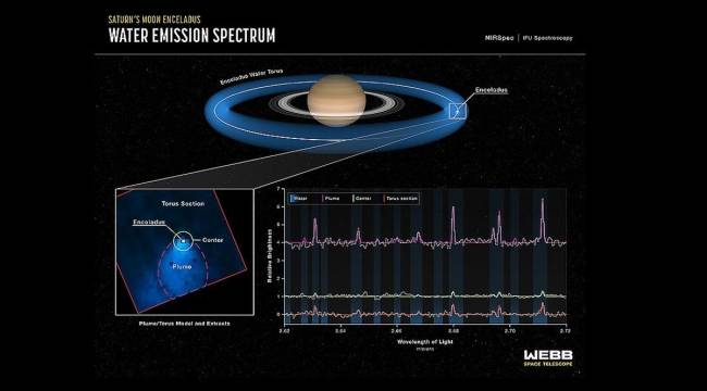 Enceladus'taki buhar sütununun uzunluğunun 6 bin 600 kilometreye ulaştığı ve bunun İngiltere ile Japonya arasındaki uçuş mesafesine eşit olduğu kaydedildi.Avrupa Uzay Ajansı (ESA) da gayzerden saniyede 300 litre su fışkırdığını, bunun olimpik su havuzunu birkaç saatte doldurmaya yetebilecek ölçüde olduğunu açıkladı.Webb teleskobunun yakın kızılötesi tayfçeker cihazını kullanan astronomlar, buhar sütununun özelliklerini tespit etmeyi başardı.Fışkıran su buharının yaklaşık yüzde 30'unun, Satürn'ün "E halkası" ile aynı noktada bulunan su halkasını beslediği belirlendi."Enceladus'taki büyük su buharı sütunlarını görmek bizi heyecanlandırıyor"
