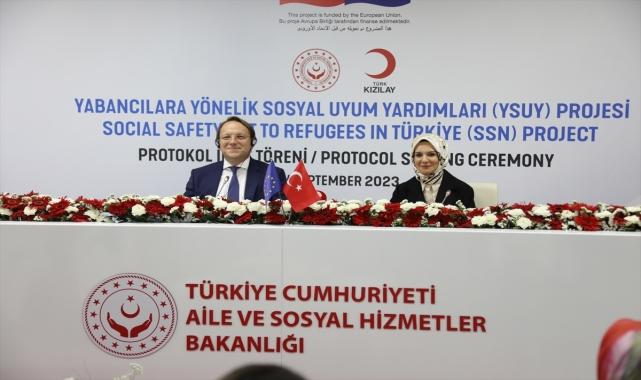 Aile ve Sosyal Hizmetler Bakanı Mahinur Özdemir Göktaş, "Bugün imzaladığımız Yabancılara Yönelik Sosyal Uyum Yardımı Projesi ile insani yardım alanında AB ile ortaklığımızı güçlendiriyoruz." ifadesini kullandı.