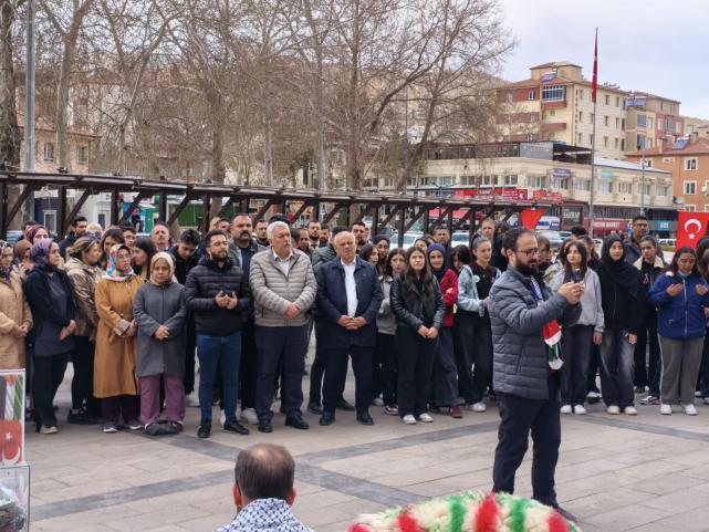 Yahyalı’da düzenlenen “Filistin’i Unutma” etkinliğinde dualar edildi, vatandaşlar Filistin halkına destek mesajları verdi.