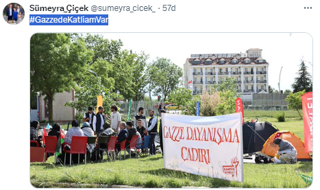 Sosyal medya platformlarını aktif bir şekilde kullanan Sümeyra Çiçek, İsrail'in Gazze'de gerçekleştirdiği soykırım ve katliamlara karşı #GazzedeKatliamVar etiketiyle bir kampanya başlattı.