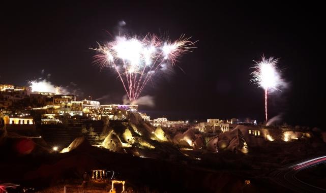 Kapadokya'da, yerli ve yabancı turistler yeni yılı peribacaları arasındaki kayadan oyma eğlence merkezleri ve turistik tesislerde karşıladı. Noel ve yılbaşı tatili dolayısıyla konaklama tesislerinde doluluk oranının yüzde 90'ı aştığı için Kapadokya'da turistlere yönelik etkinlikler akşam saatlerinden itibaren başladı.Özellikle Avanos ve Ürgüp ilçeleri ile Uçhisar, Ortahisar ve Göreme beldesi başta olmak üzere bölgedeki çok sayıda turistik tesis ve eğlence merkezlerinde yoğunluk oluştu.Yılbaşı gecesi için hazırlanan merkezlerde kimileri kapalı alanlardaki etkinliklere kimileri de mekan dışlarında yakılan ateşin çevresindeki eğlence programlarına katıldı.Yeni yıla girilmesiyle birlikte bazı tesislerde havai fişek gösterisi düzenlendi.