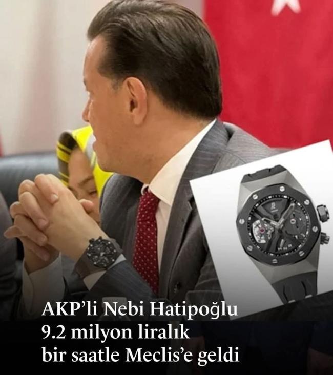 AKP’ye geçen Eskişehir Milletvekili Nebi Hatipoğlu’nun Meclis’te taktığı milyonluk saat, yoksulluk tartışmalarının sürdüğü bütçe görüşmelerinde dikkat çekti.
