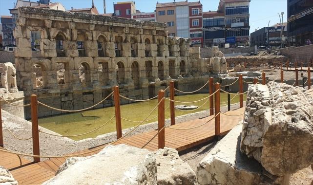 Yozgat'ın Sarıkaya ilçesinde, 2018'de UNESCO Dünya Mirası Geçici Listesi'ne alınan ve "Kral Kızı" adıyla bilinen Roma hamamı Basilica Therma'da çevre düzenleme çalışmaları tamamlandı. Mimarisi ve 50 derece sıcaklıkta 2 bin yıldır akan suyuyla öne çıkan hamamın Müze Müdürlüğü gözetiminde 2022'de başlatılan çevre düzenleme çalışması tamamlanarak geçici kabulü yapıldı.Sarıkaya ilçesini ziyaret eden ve Roma hamamında incelemede bulunan Yozgat Valisi Mehmet Ali Özkan, İl Kültür ve Turizm Müdürü Hüseyin Çiftci ile Sarıkaya Belediye Başkanı Ömer Açıkel'den bilgi aldı.Vali Özkan, AA muhabirine, Roma hamamı ve Aydıncık Kazankaya Kanyonu'nun ilçenin önemli turizm değerleri olduğunu söyledi.Kentte turizm potansiyeline güç katmaya, turizme dönük alanları hizmete sunmaya devam edildiğini belirten Özkan, şunları kaydetti:"Burada en önemli eserlerimizden biri de Sarıkaya ilçemizdeki tarihi Roma hamamı. Turizm Bakanlığımızın himayesinde çevre düzenlemesi, restorasyon çalışmaları tamamlandı. Vatandaşımıza yönelik dinlenme alanı, yöresel değerlerin sunumuna ve satışına yönelik binalarımız tamamlanmış vaziyette. İnşallah bizler de Yozgat merkezden, Çamlık'tan Sarıkaya'ya, Sarıkaya'dan Aydıncık'a, Aydıncık'tan Kazankaya'ya ve diğer ilçelerimizde de yer alan turizm potansiyellerimizi buralara ekleyerek bir turizm güzergahı oluşturmak istiyoruz."Özkan, Roma hamamını yakın zamanda ziyarete açacaklarını aktararak, "Şimdiden hayırlı olmasını diliyorum. Bu vesileyle Turizm Bakanımıza ve ilimizden hiçbir daim himayelerini eksik etmeyen Sayın Cumhurbaşkanımıza ve gayretleriyle bizlere güç veren kıymetli hemşerilerimize ve milletvekillerimize şükranlarımı sunuyorum." ifadelerini kullandı.
