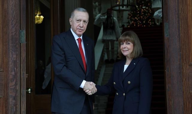Cumhurbaşkanı Recep Tayyip Erdoğan, Yunanistan Cumhurbaşkanı Sakelaropulu ile Yunanistan'ın başkenti Atina'da bir araya geldi.