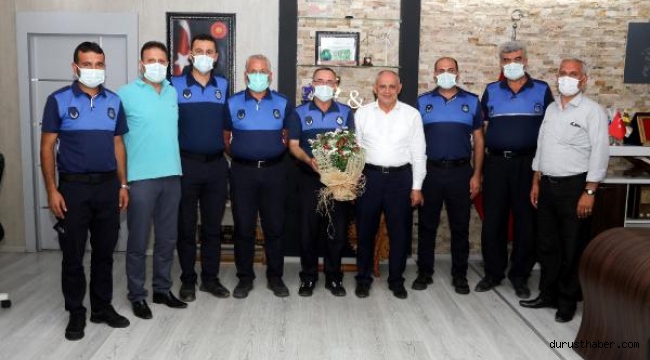 YAHYALI Belediyesi Zabıta Müdürlüğü, Zabıta Haftası ve Zabıta Teşkilatı'nın 195'inci kuruluş yıldönümünü nedeniyle Belediye Başkanı Esat Öztürk'ü makamında ziyaret etti.