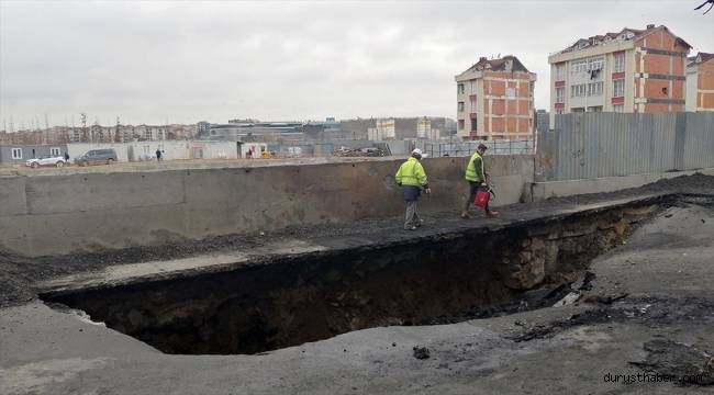 Zeytinburnu'nda dün akşam saatlerinde doğal gaz sızıntısı sonucu yangın çıkan ve 4 otomobilin zarar gördüğü bölgede 2 metre derinliğinde çukur oluştu.